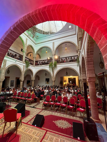 FR - Afin de clôturer une semaine de résidence qui a réuni réuni trois formations musicales féminines d'exception, à savoir le Chœur d'Essaouira Mogador, les chorales belges "Les Fatmas de Belgica" et "Bab’Zouz" ainsi que la troupe des "Haddarates" d'Essaouira "Noujoum Souira", un concert a été donné le 27 juillet 2024.